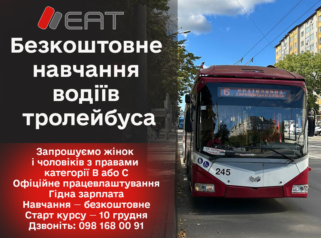 Комунальне підприємство «Електроавтотранс» (Івано-Франківськ) відкриває набір для жінок та чоловіків з посвідченням водія категорії «В» або «С» на повний курс підготовки за професією, яка завжди буде актуальною.